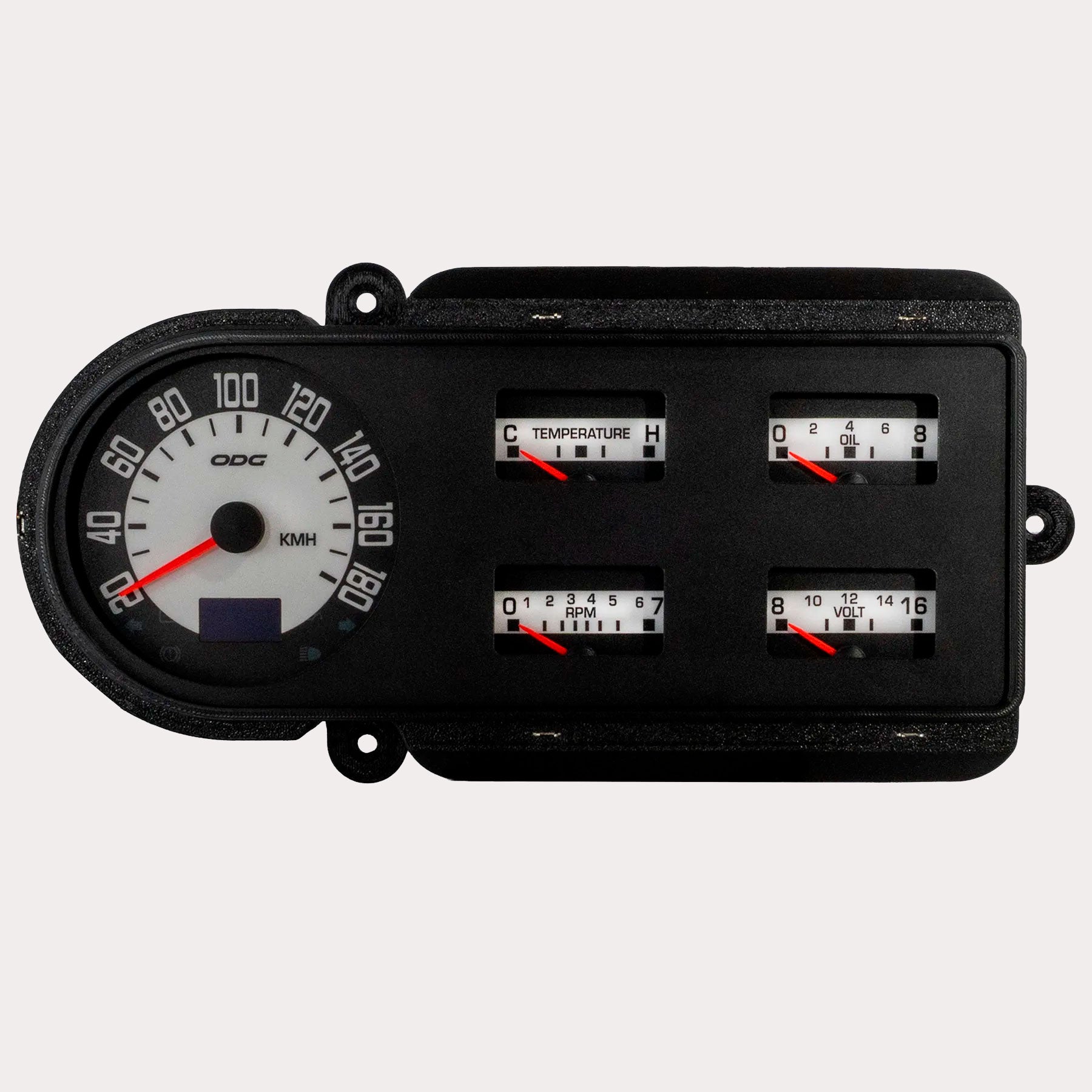 This instrument cluster from ODG Instruments was inspired by the classic Ford F100 1948–1950 model, making it ideal for replacing original gauges or for use in custom projects. It provides all essential information for vintage and specialty vehicles.