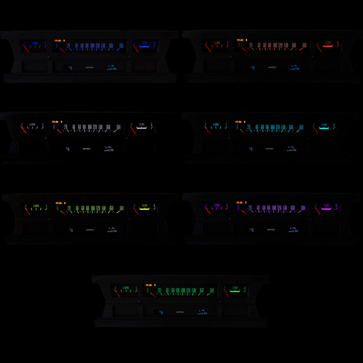 - Engine temperature scale: 40 to 120 degrees (following the original spelling, values are not displayed on the scale)